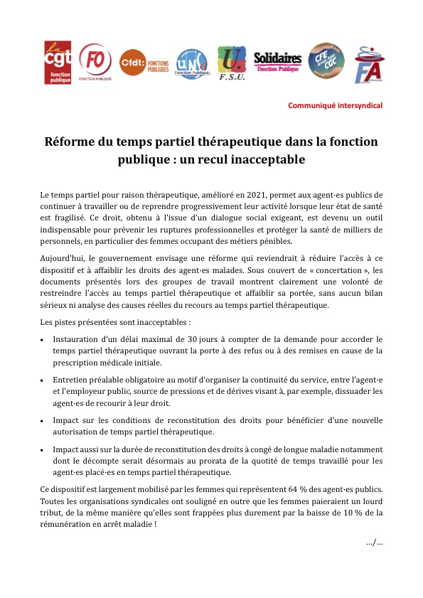 Réforme du temps partiel thérapeutique dans la fonction publique : un recul inacceptable.