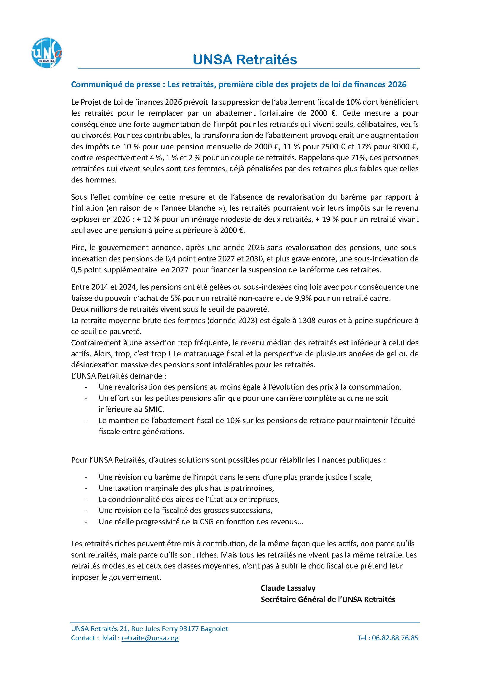 Pour l'UNSA Retraités, le projet de budget soumis à l’examen des parlementaires prétend mettre à contribution les retraités d’une manière qui dépasse les bornes. Vraiment, trop c’est trop !